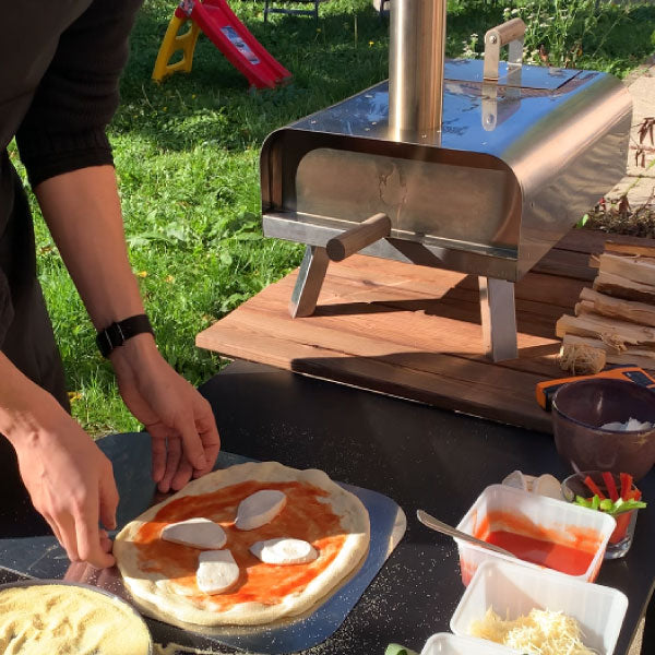 Faire cuire une pizza peut sembler délicat, mais avec un peu de pratique, cela devient un jeu d’enfant. Faites glisser votre pizza dans le four, fermez la porte. 20 secondes après, tournez la pizza d’un quart de tour, refermez la porte, faites la même chose encore 2 fois en fonction de la température de votre four, et votre pizza est prête. La cuisson rapide et intense garantit une croûte croustillante et des saveurs qui se marient à la perfection avec le feu de bois.
